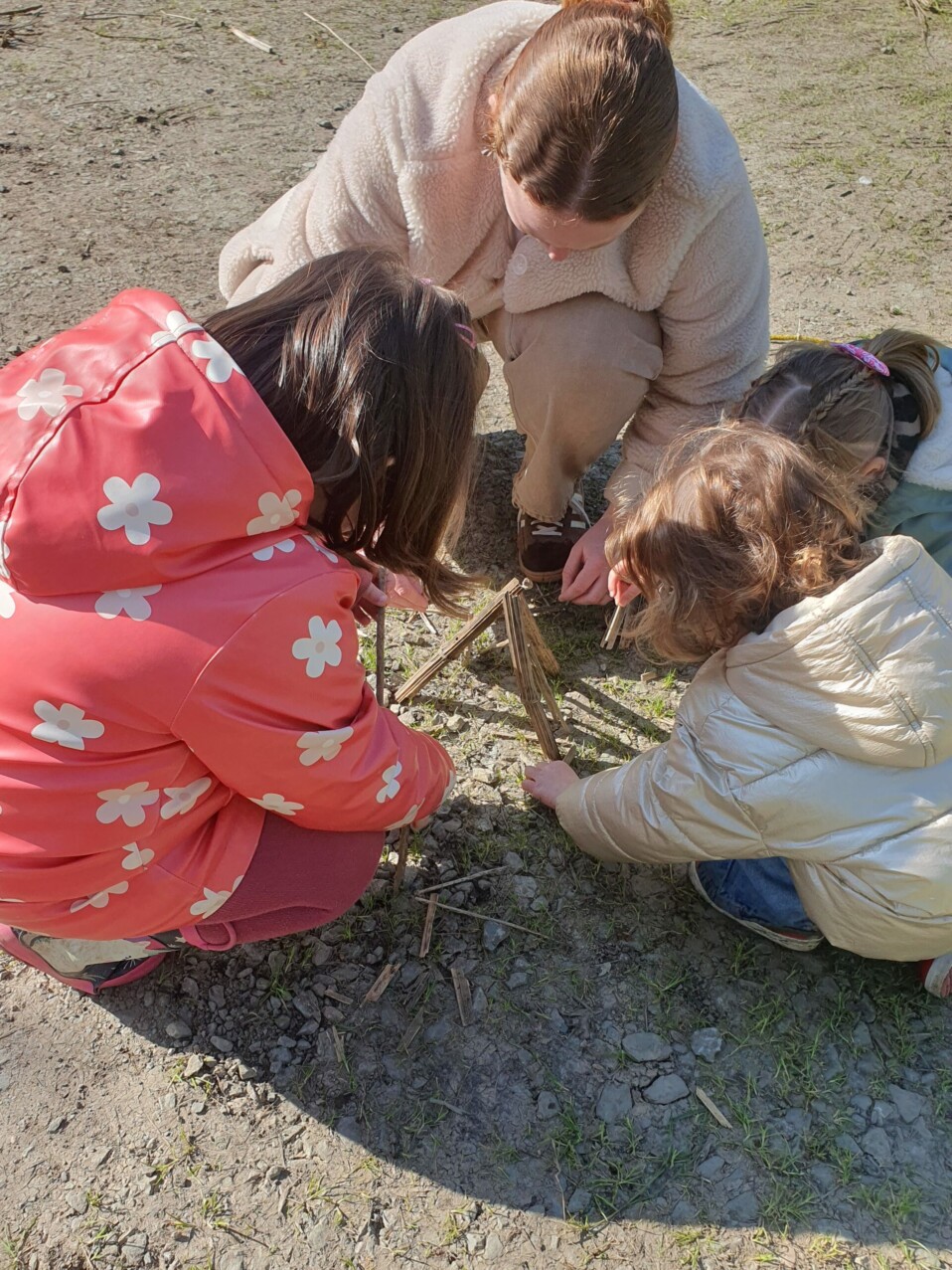 Ce matin, les élèves de PS MS GS se sont rendus près de la cabane à pain pour vivre une animation nature avec Christelle et Patrick. Lors de cette animation, ils sont partis à la recherche des lutins pour aborder les différents végétaux puis ils leur ont construit un joli petit village pour qu’ils s’abritent.