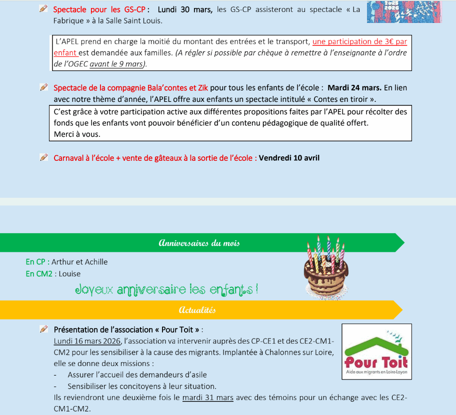 Fil info du mois de mars