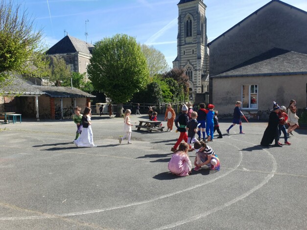 Ce matin, les personnages de contes, de jeux, de BD…ont envahi notre école pour une matinée colorée et festive. Les élèves ont pu réaliser 4 ateliers : cuisine, bricolage, fresque et chant dans les différentes classes avant de tous se retrouver pour défiler, danser et profiter tous ensemble.
